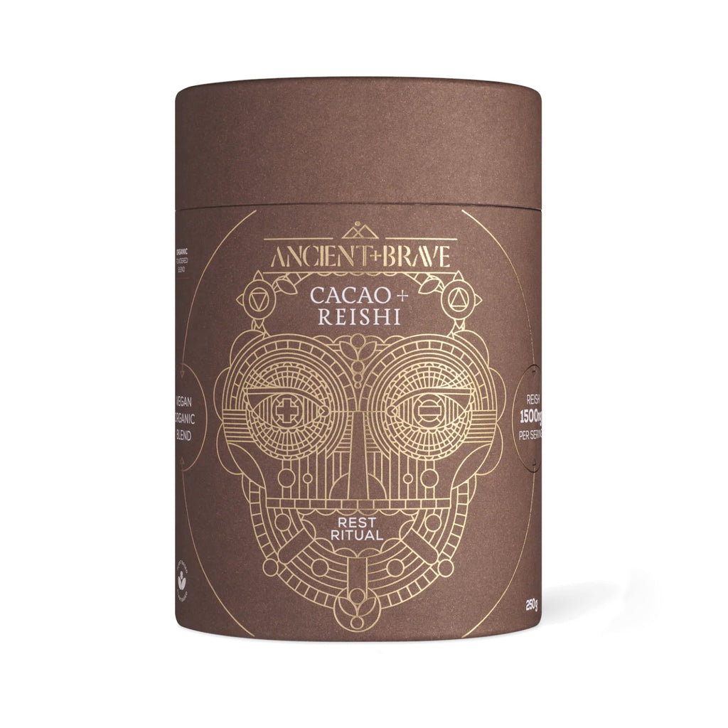 This delicious raw cacao brew from Ancient and Brave is infused with balancing ashwagandha, calming hops, and adaptogenic reishi mushroom.  The blend has been carefully curated to help restore your natural rhythm and to promote tranquillity. Enhanced with nutrient-dense baobab, beetroot, and chicory, this vegan hot chocolate has a deep, earthy flavour while delivering a nourishing dose of prebiotic fibre to support gut health. Sip mindfully, set your intention, and let this comforting drink nourish your body and mind.