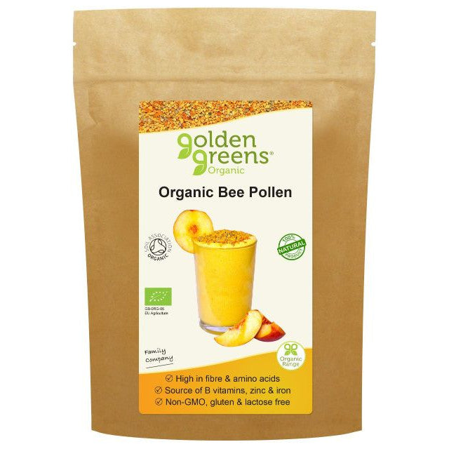 Bee Pollen is rich in antioxidants, essential amino acids and bioflavonoids making it a favourite in the beauty industry. Vitamin B1 and Zinc in Bee Pollen contribute to maintenance of normal skin, hair and nails. The powder also contains iron which contributes to immune system function and the reduction of tiredness and fatigue. Golden Greens Organic Bee Pollen comes from the mountainous regions of North Western Spain. The process uses natural organic bee keeping methods to ensure the health of the bees and the purity of their pollen.