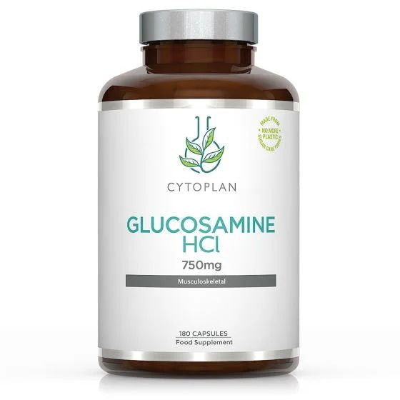 Glucosamine, which is naturally synthesised within the body but rarely found in natural food sources, provides raw material for the building blocks of cartilage tissue around joints. When there is excess wear, more raw material is needed for the joints and surrounding structures in our bodies. If body chemistry is unbalanced, and as we age, it may be that insufficient glucosamine is naturally produced. Glucosamine hydrochloride (the chloride form of N-acetyl glucosamine) is the newest and purest form of glucosamine. Cytoplan Glucosamine HCL is derived from the shells of shellfish from Far Eastern waters.