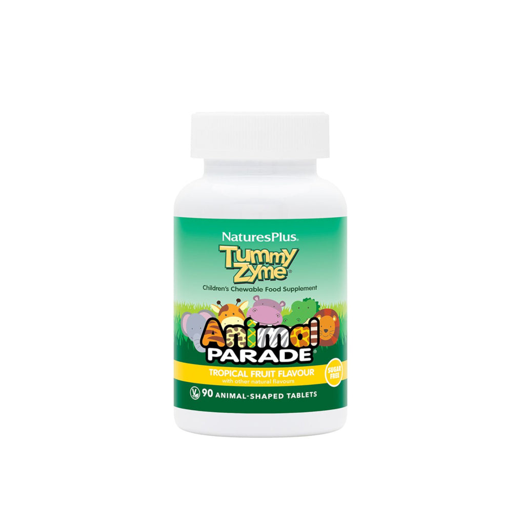 Nature's Plus Animal Parade Children’s Chewable Tummy Zyme is the complete, natural digestive-enzyme supplement that kids love. With a delightful tropical fruit flavour, each fun, animal-shaped tablet contains a diverse range of highly active food enzymes and good bacteria. Gentle on the stomach..
