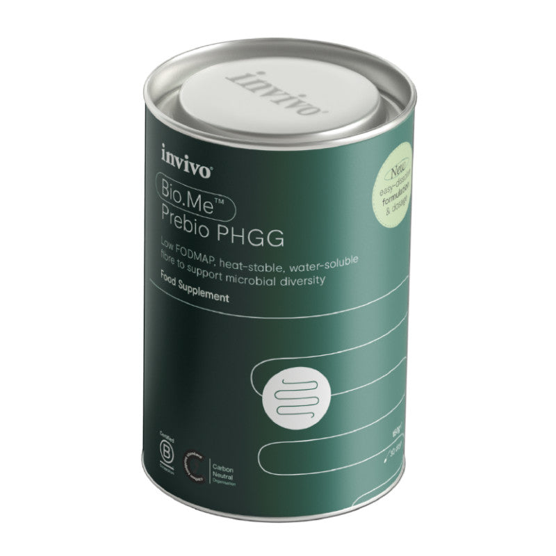 Prebio PHGG from Invivo is a colourless, flavourless prebiotic fibre derived from the seeds of the guar plant.  It is used to rebalance the gut microbiome and to promote bacterial diversity, selectively increasing Bifidobacterium and other SCFA producing strains.  This vegan dietary fibre also helps to balance faecal movements, both constipation and diarrhoea, and increase feelings of satiety.  Highly soluble and heat stable, it can mix into any drink, be baked into foods, or added into stovetop meals.  PHGG is well tolerated in individuals with bowel symptoms, including IBS and SIBO.