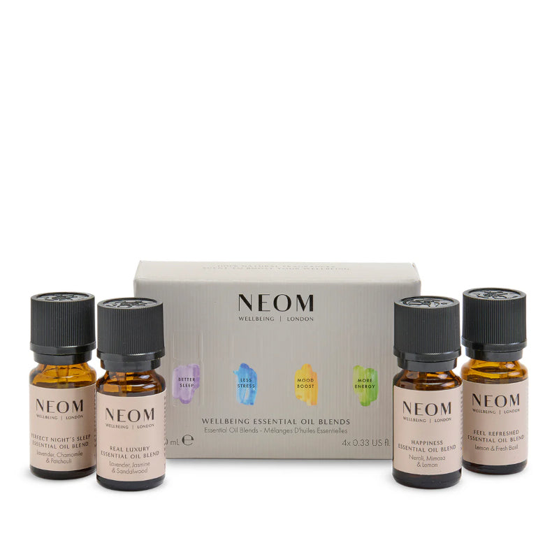 This collection contains NEOM's four iconic, 100% natural essential oil wellbeing blends. Expertly formulated with the purest essential oils, to help you prepare for sleep, feel calm, energised or uplifted. Perfect to drop in your Wellbeing Pod or in a warm bath.