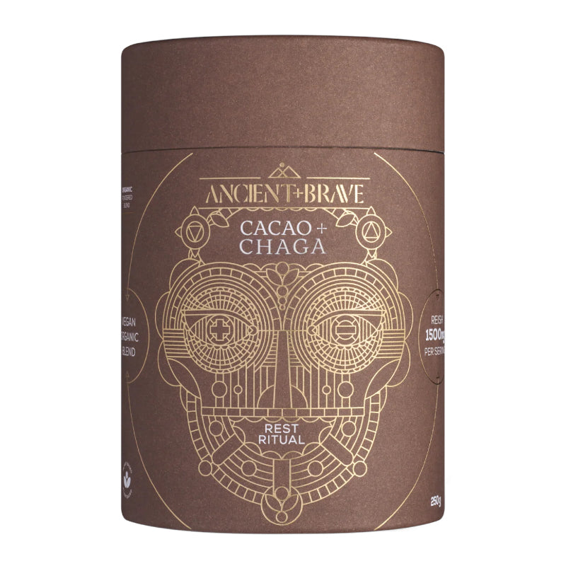 This delicious raw cacao brew from Ancient and Brave is infused with antioxidant-rich, immune-supporting Chaga mushroom.  Enhanced with nutrient-dense baobab and beetroot, plus blood-sugar supportive cinnamon, this vegan hot chocolate has a naturally sweet yet deep, earthy flavour.  Beetroot offers numerous benefits for skin health, thanks to its rich antioxidant content and ability to support healthy circulation.  Raw cacao, also rich in anti-oxidants and essential minerals, is a good source of healthy fats and fibre, supporting digestive health too.  Sip mindfully, set your intention, and let this comforting drink nourish your body and mind.