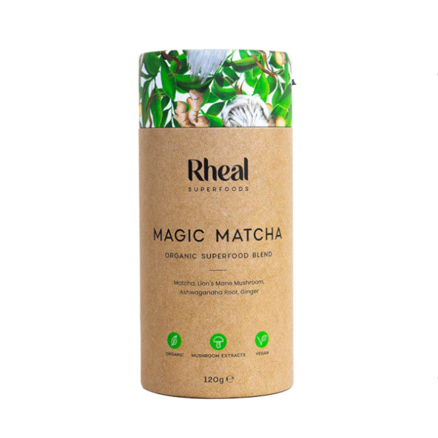 Rheal Superfoods Magic Matcha is the perfect superfood blend to improve focus and calm the mind. Japanese grade matcha is a rich source of anti-inflammatory and anti-oxidant properties and provides a slow release of energy. Lion’s Mane Mushroom is included to further support focus and brain heath, and Ashwagandha to help modulate the stress response.